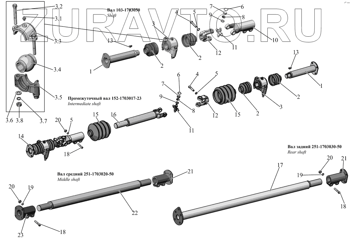 | 17 | 251050-1703040 | Вал задний | Нет в продаже |