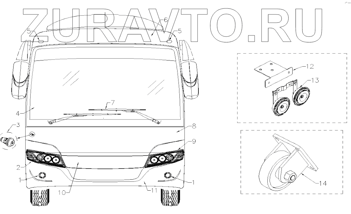 | 14 | 2808-020-A4F | Front bumper wheel assembly | Нет в продаже |