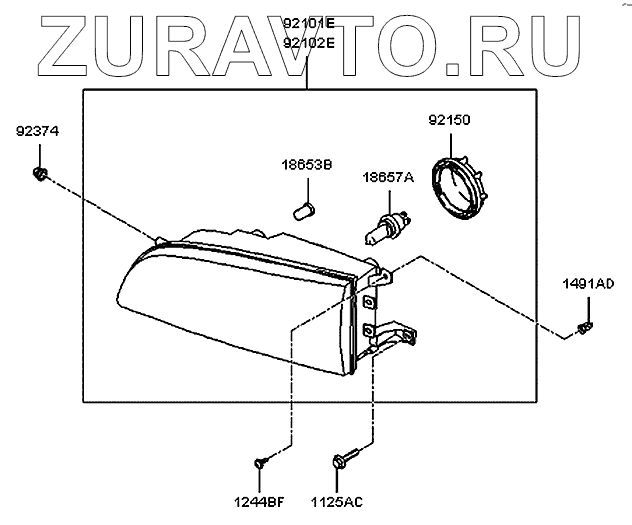 | 92101E | 92101-5A100 | Фонарь в сборе-фара, лев. | Нет в продаже |