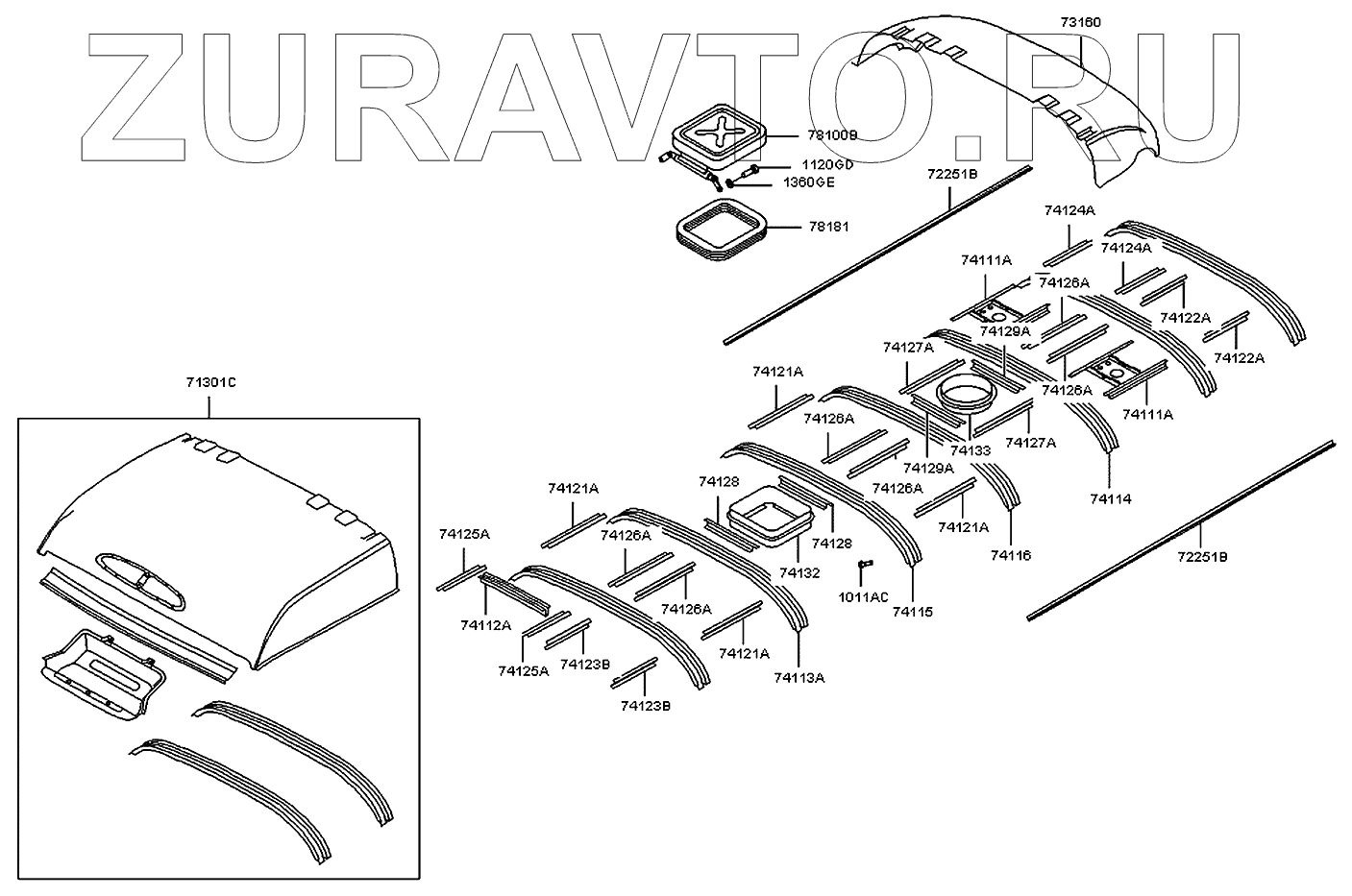 | 74126A | 74126-5A000 | Рама крыши | Нет в продаже |