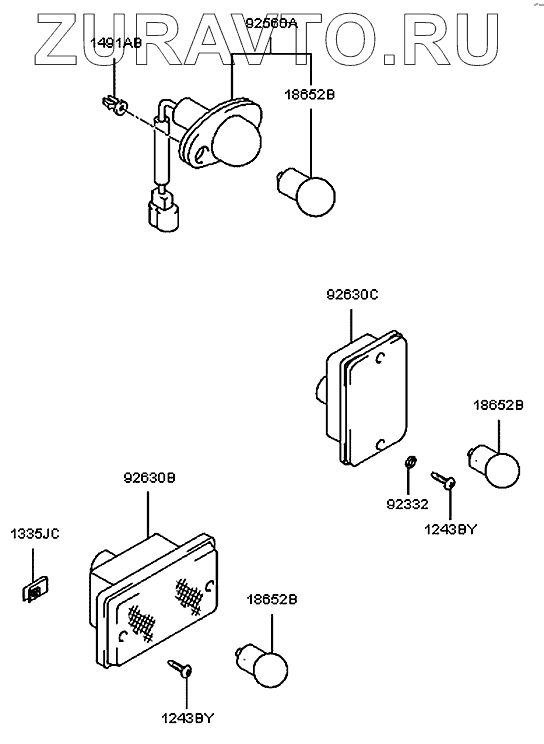 | 92630B | 92630-5A100 | Лампа багажника | Нет в продаже |