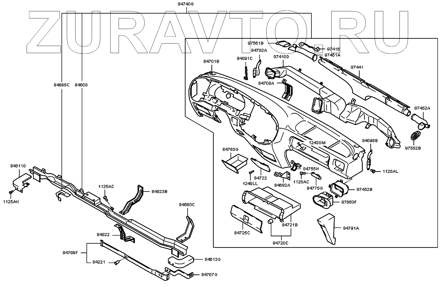 | 84696B | 84696-5A000 | Кронштейн крепления панели приборов левый | Нет в продаже |