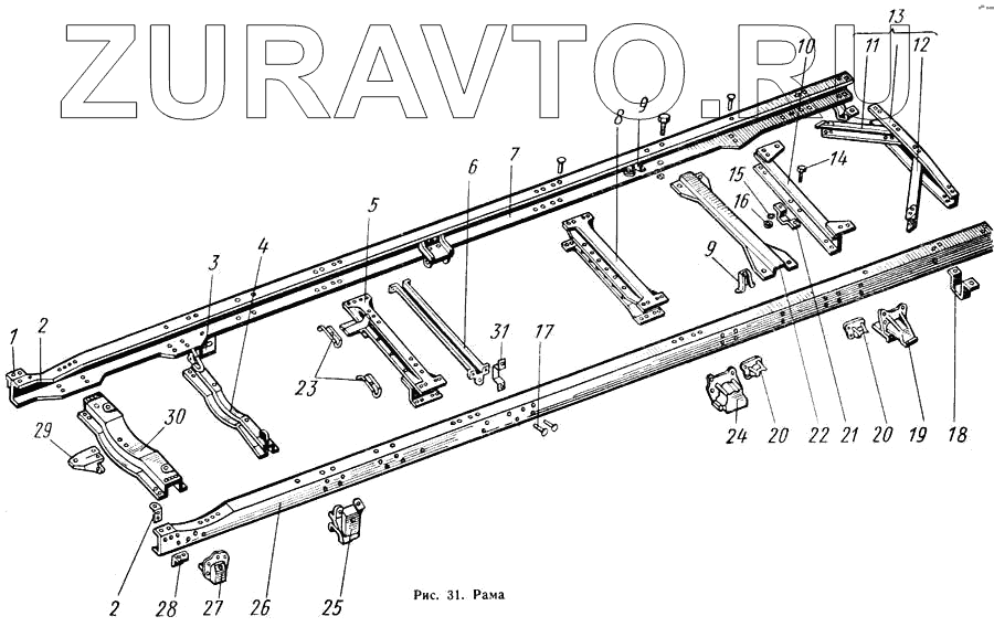 | 30 | 53-2801080 | Поперечина № 1 рамы в сборе | Нет в продаже |