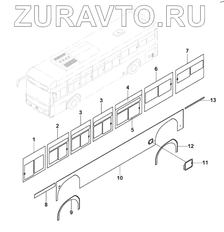 | 5 | 255901238 | Fourth from left, side glass-outward window, tempered, 6106AGBEVL (fifth generation style), light gray, heat insulation | Нет в продаже |