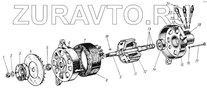 | 11 | Г2-3701200-Б | Ротор генератора с контактными кольцами в сборе | Нет в продаже |