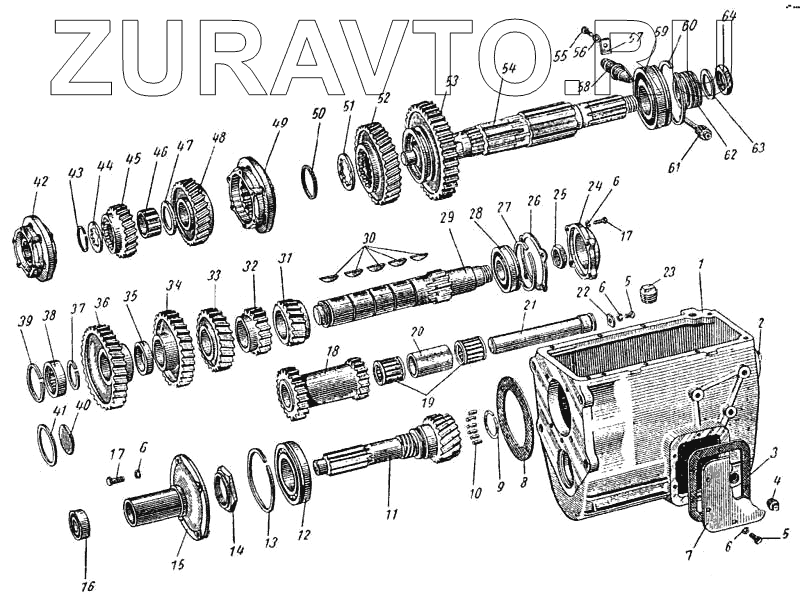 | 54 | 130-1701105 | Вал коробки передач вторичный | Нет в продаже |