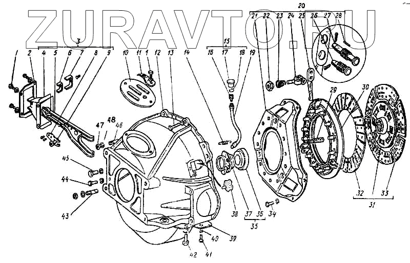 | 21 | 53-1601125-01 | Кожух сцепления | Нет в продаже |