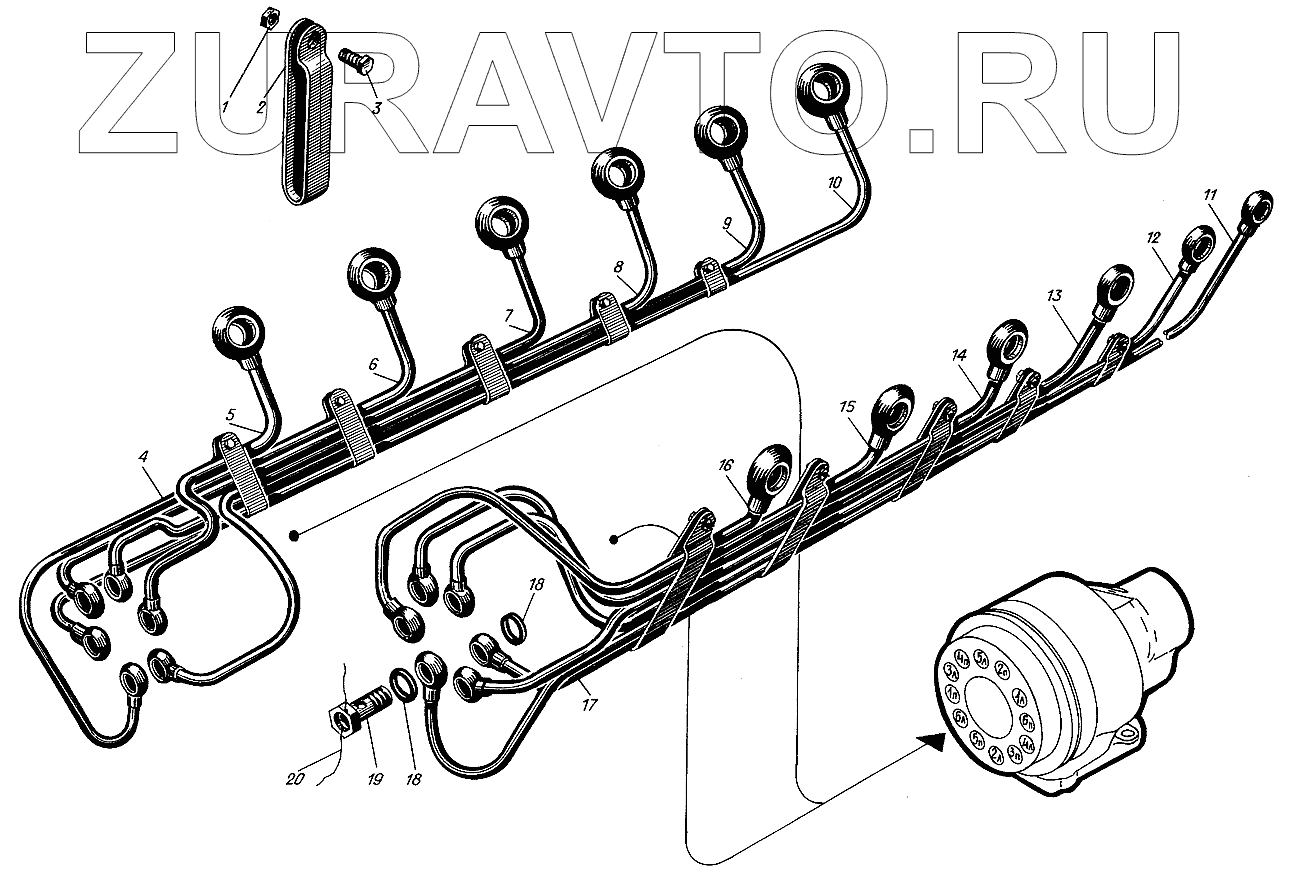 | 11 | сб.522-12 | Трубка воздушного пуска шестого правого цилиндра | Нет в продаже |