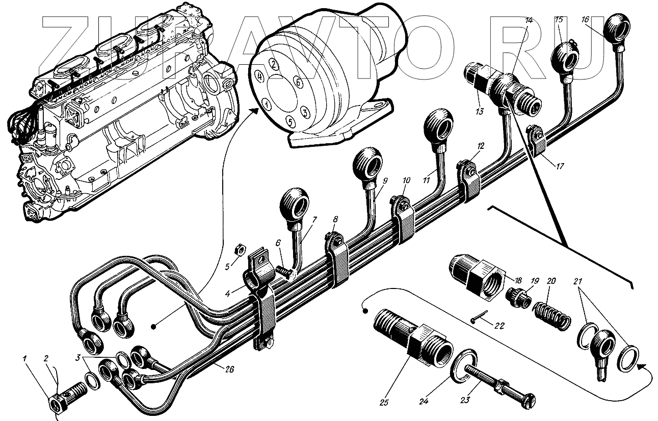 | 16 | сб.522-12 | Трубка воздушного пуска шестого правого цилиндра | Нет в продаже |