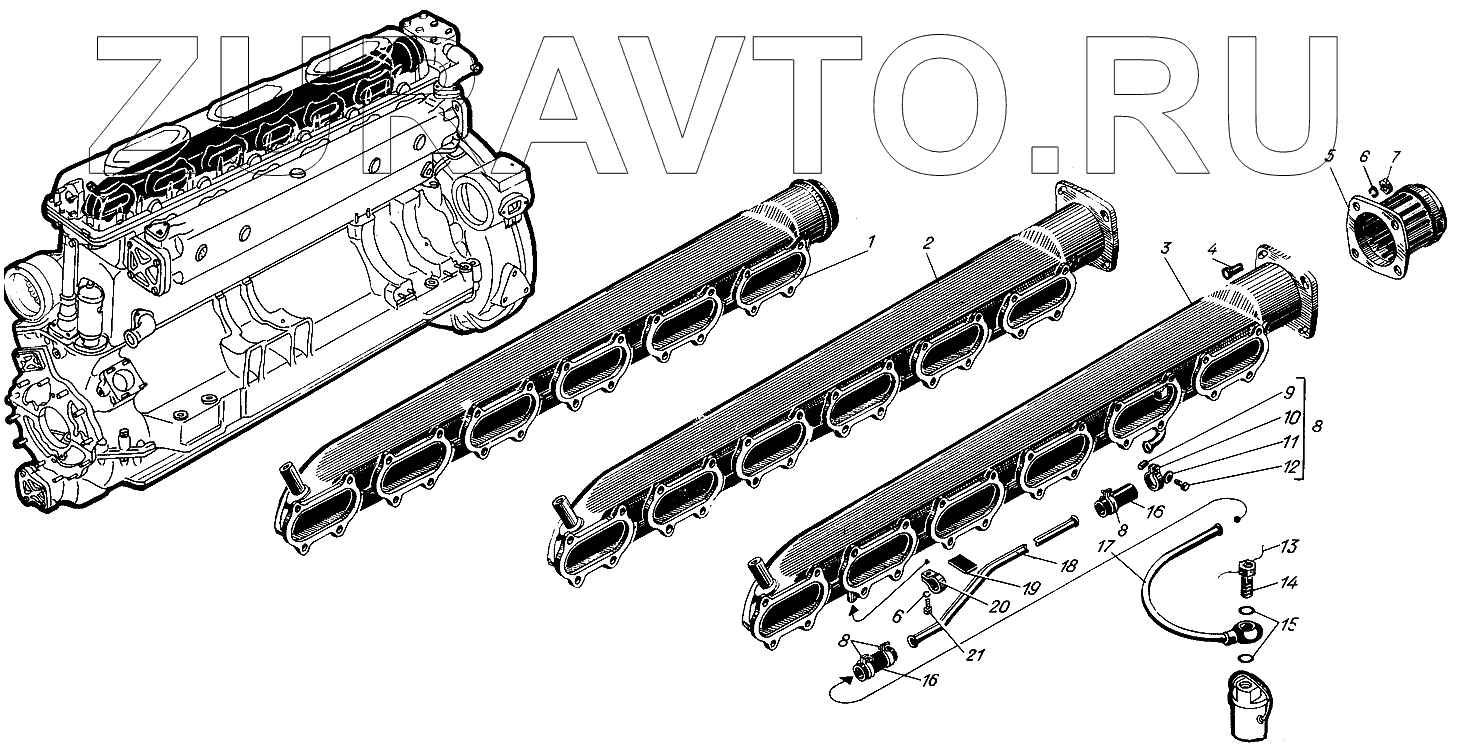 | 3 | сб.519-01-9 | Коллектор впускной правый | Нет в продаже |