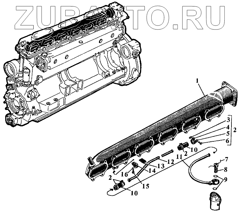| 1 | сб.519-01-3 | Коллектор впускной правый | Нет в продаже |