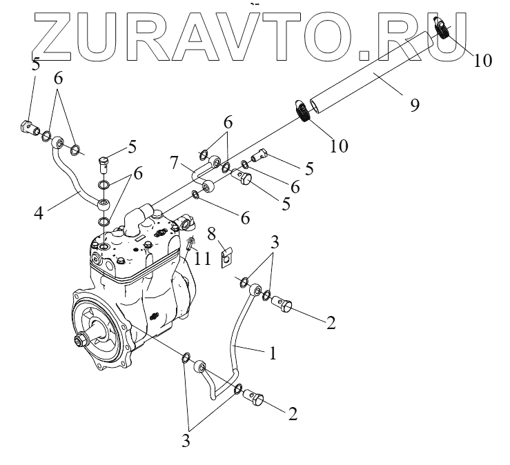 | 9 | 3509314-74А | Впускной воздухопровод воздушного компрессора | Нет в продаже |