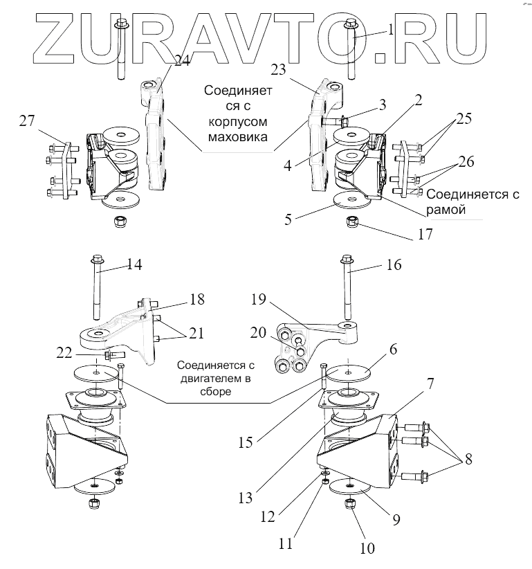 | 6 | 1001030-76А | Верхняя крышка передней подвески двигателя | Нет в продаже |