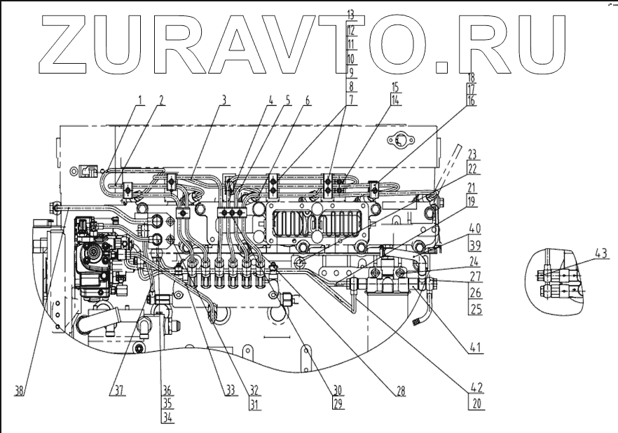 | 36 | D26C-019-902 | Fuel return pipe assy, fuel injection pump | Нет в продаже |