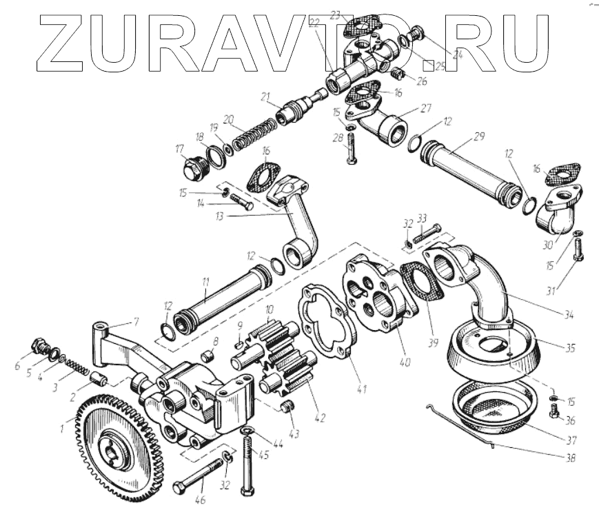| 34 | 8462.1011400-10 | Труба всасывающая масляного насоса (в сборе) | Нет в продаже |