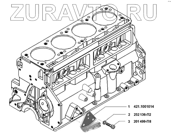 | 1 | 4215.1001014 | Кронштейн крепления подушки передней опоры двигателя к блоку | Нет в продаже |