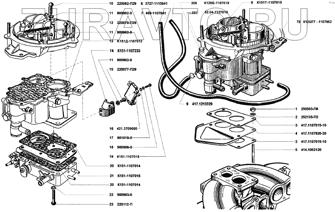 | 6 | К151Т-1107010 | Карбюратор в сборе (45 7170 8) | Нет в продаже |