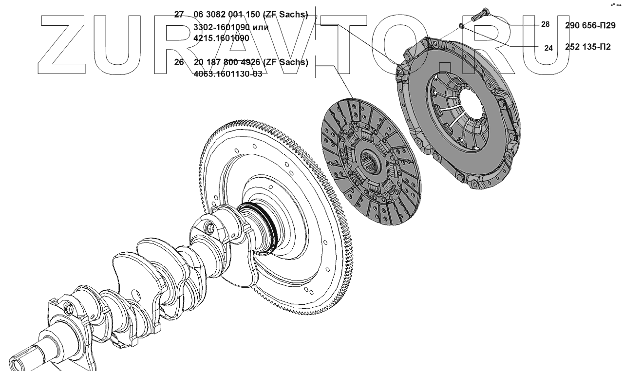 | 27 | 63082001150 | Диск сцепления нажимной с кожухом в сборе | Нет в продаже |