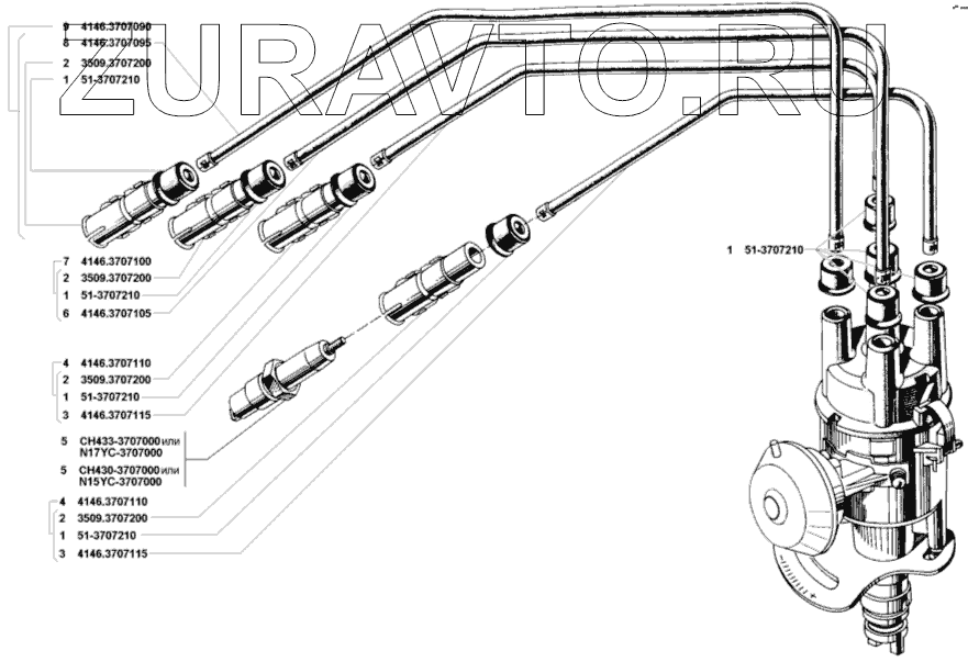 | 4 | 4146.3707110 | Провод с наконечниками к свечам 3 и 4 цилиндров в сборе | Нет в продаже |