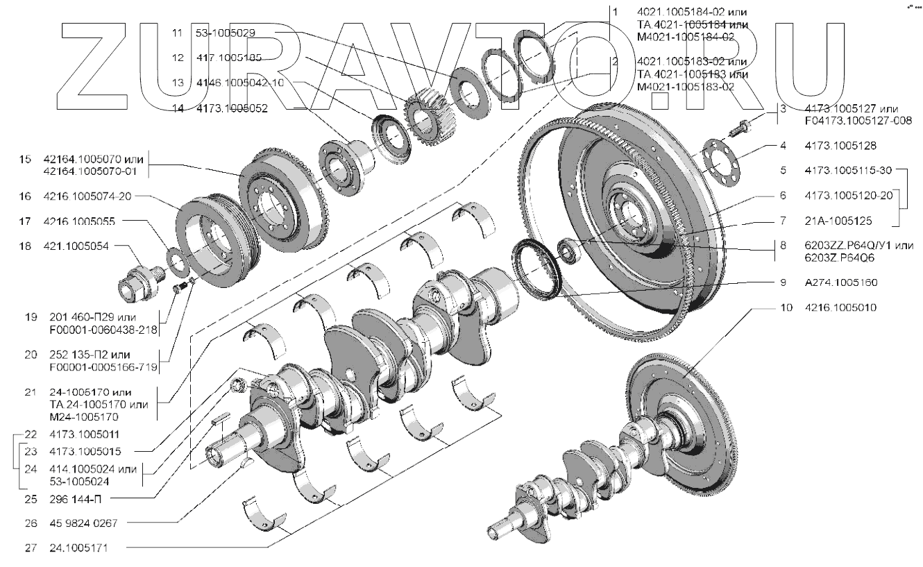| 10 | 4216.1005010 | Вал коленчатый и маховик в сборе | Нет в продаже |