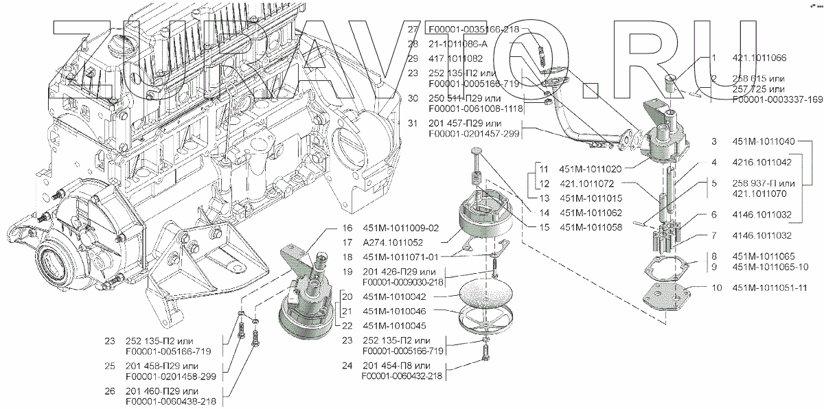 | 16 | 451М-1011009-02 | Насос масляный с маслоприемником в сборе | Нет в продаже |