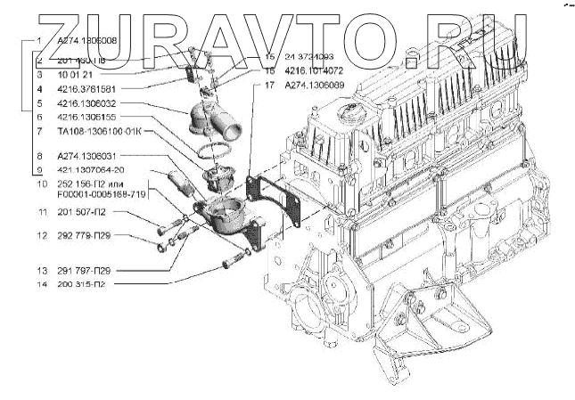 | 17 | А274.1306089 | Прокладка корпуса термостата | Нет в продаже |