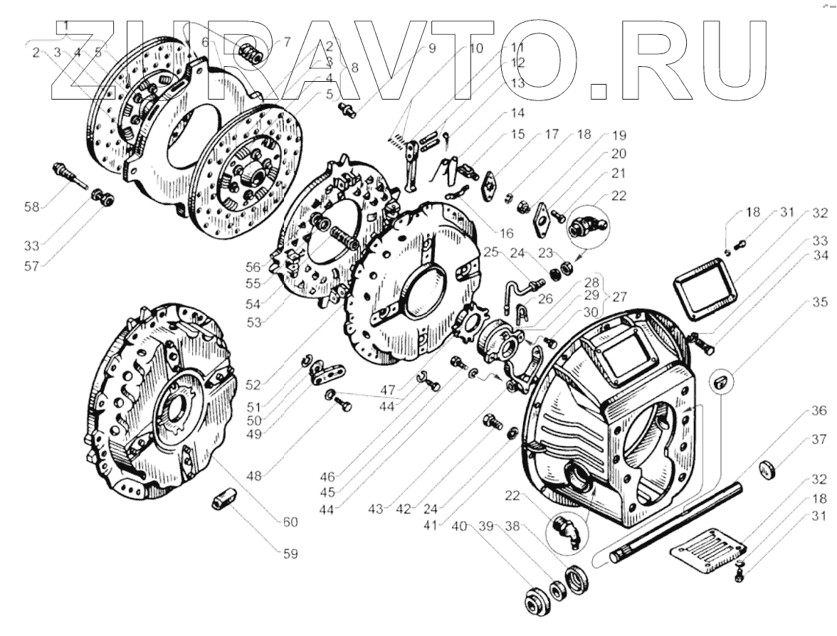 | 60 | 236К-1601090-Б2 | Диск нажимной с кожухом в сборе | Нет в продаже |