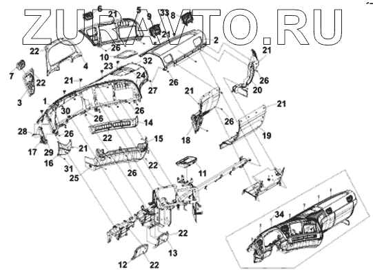 | 18 | 5305140-C0100 | Средний нижний защитный кожух панели приборов со стороны пассажира | Нет в продаже |