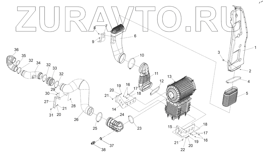 | 33 | 1109452-56A/B | Патрубок - выход воздушного фильтра второй ступени | Нет в продаже |