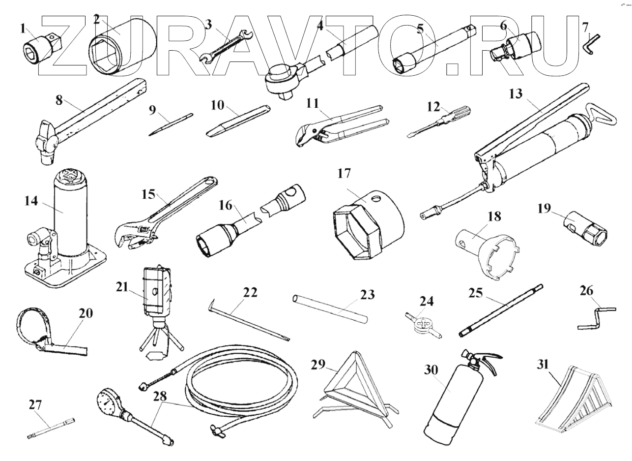 | 17 | 3916251-50A | Торцовый ключ для гайки поворотной цапфы передней оси | Нет в продаже |