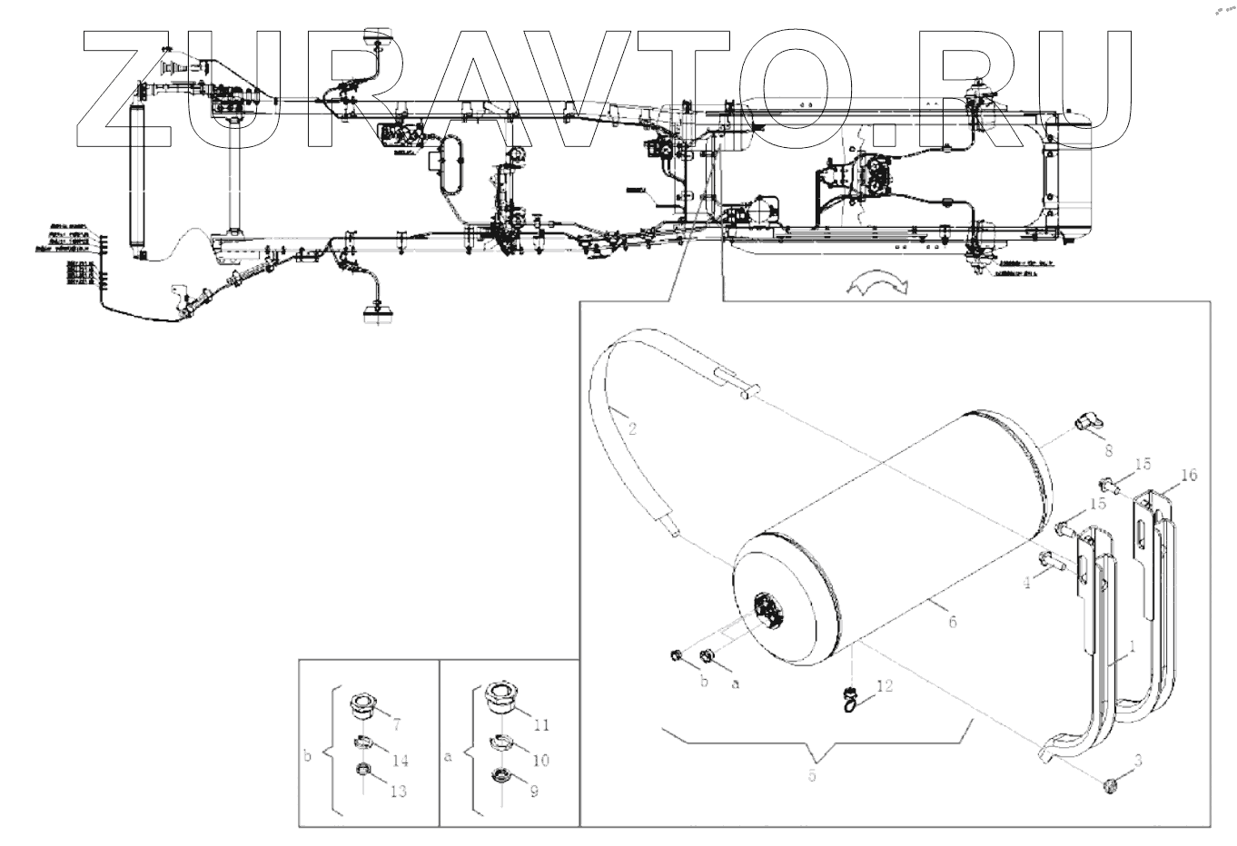 | 16 | 3513075-2051/A | Кронштейн дополнительного воздушного резервуара в сборе | Нет в продаже |