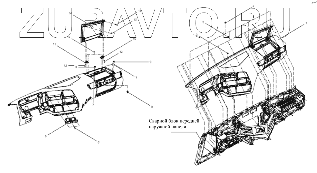 | 14 | 5310135-B90/I | Верхняя крышка панели стола в сборе | Нет в продаже |