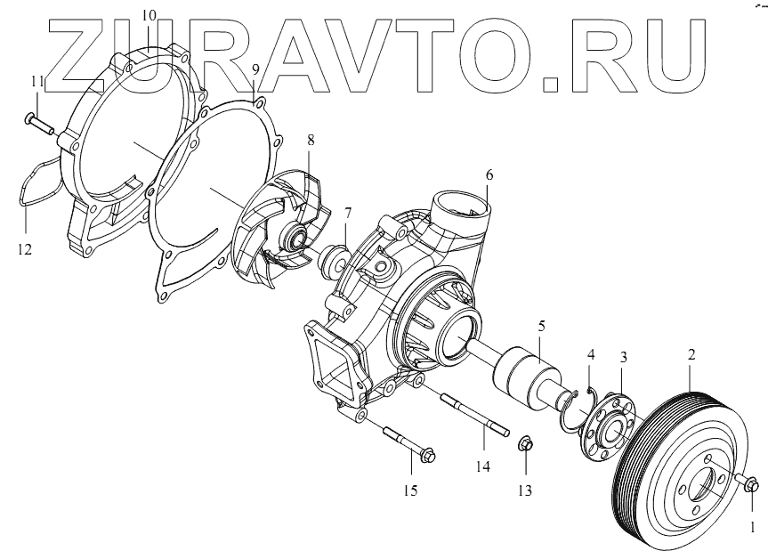 | 8 | 1307020-53D | Крыльчатка водяного насоса в сборе | Нет в продаже |