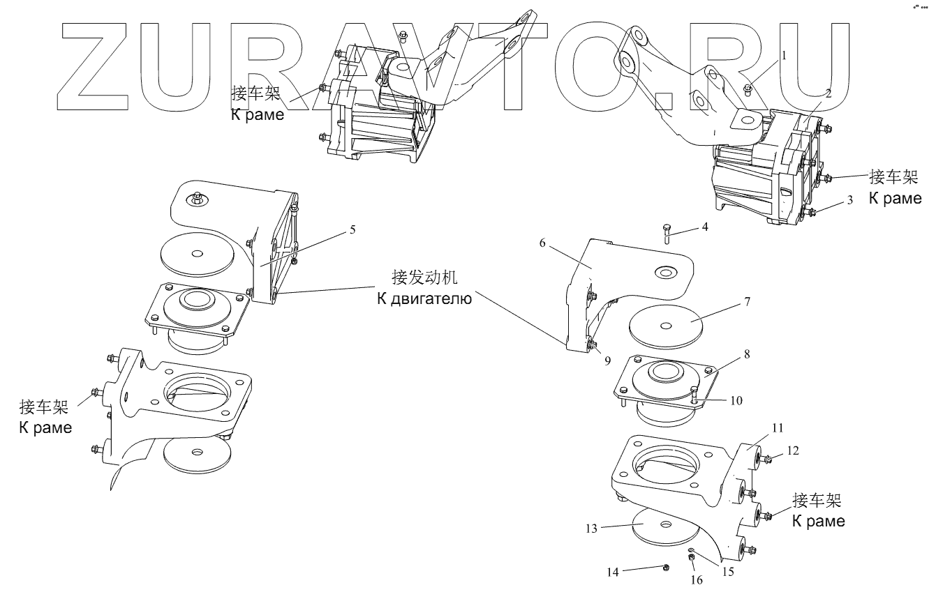 | 7 | 1001030-76A | Верхняя крышка передней подвески двигателя | Нет в продаже |