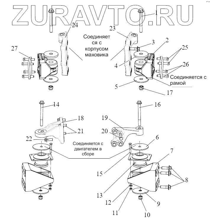 | 6 | 1001030-76А | Верхняя крышка передней подвески двигателя | Нет в продаже |
