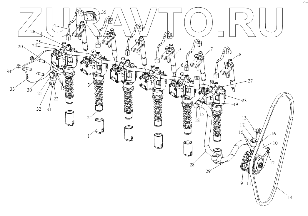 | 23 | 1104100-66D | Топливопровод одинарного насоса с электронным управлением в сборе | Нет в продаже |