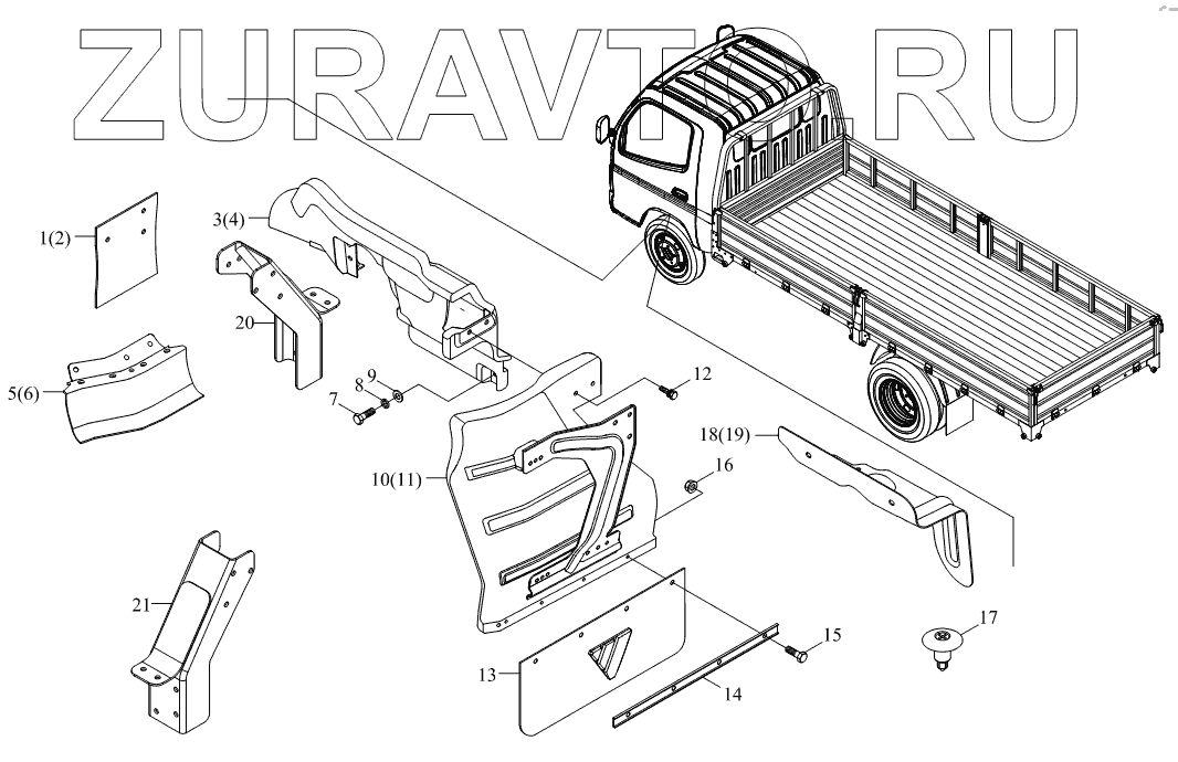 | 21 | 1В20084300026 | Монтажный комплект доски заднего брызговика под правое переднее колесо для модели с полуторарядов | Нет в продаже |