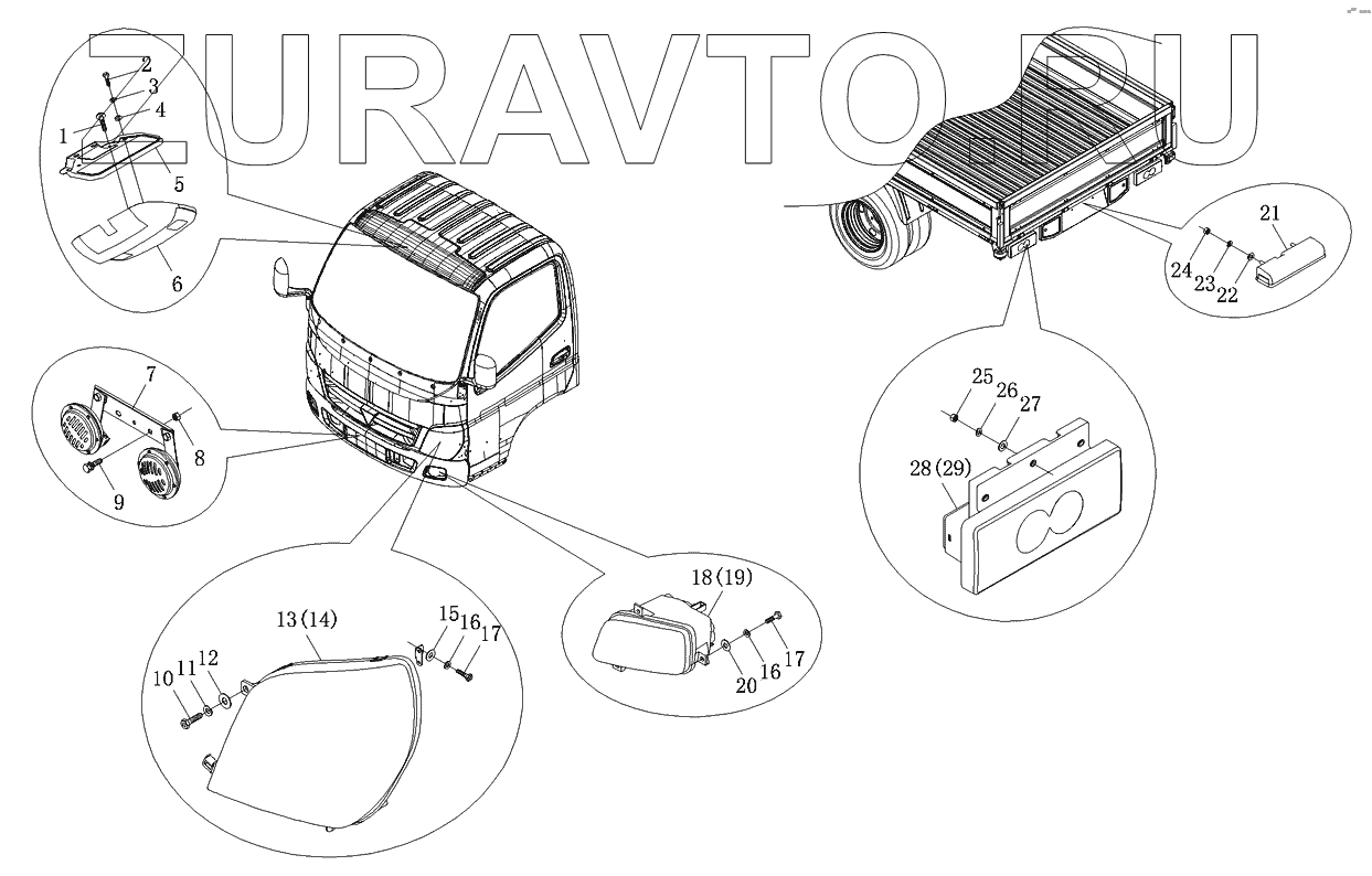 | 29 | 1В18037200013 | Фонарь задний правый в сборе 24V | Нет в продаже |