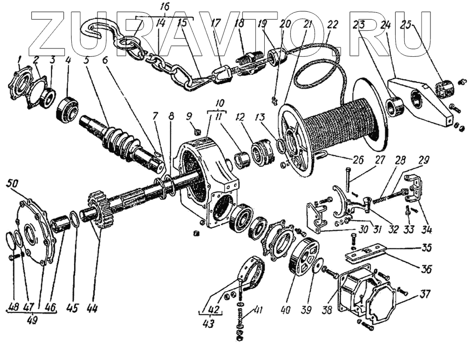 | 44 | 63А-4501030-А | Вал лебедки с червячным колесом в сборе | Нет в продаже |