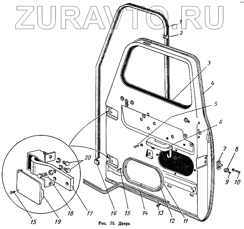 | 17 | 53-6106010 | Петля двери правая с кронштейном в сборе | Нет в продаже |