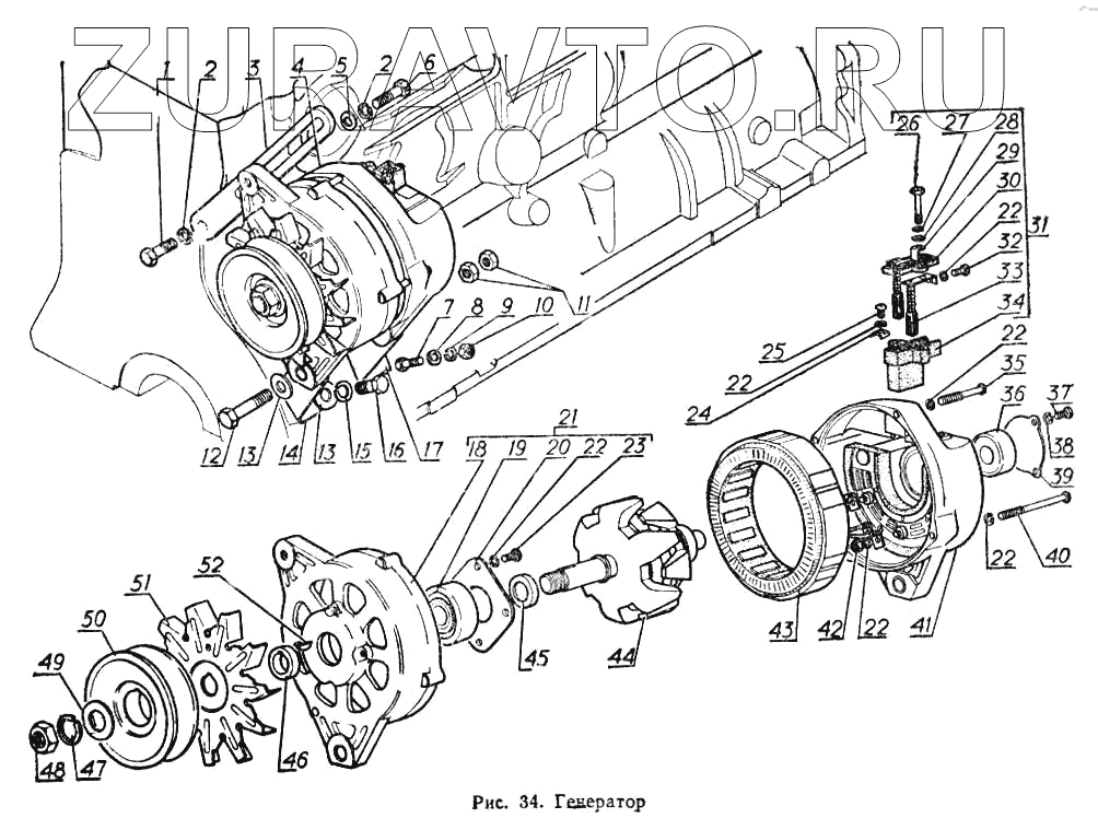 | 17 | 52-3701059 | Кронштейн генератора задний | Нет в продаже |