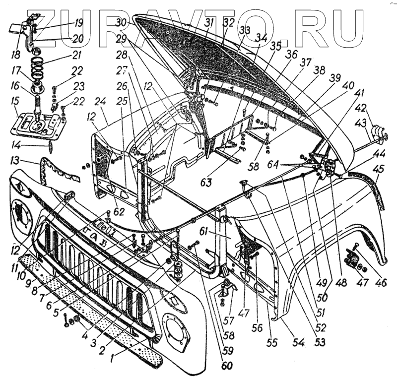 | 43 | 53-50-8406150 | Привод замка капота в сборе | Нет в продаже |