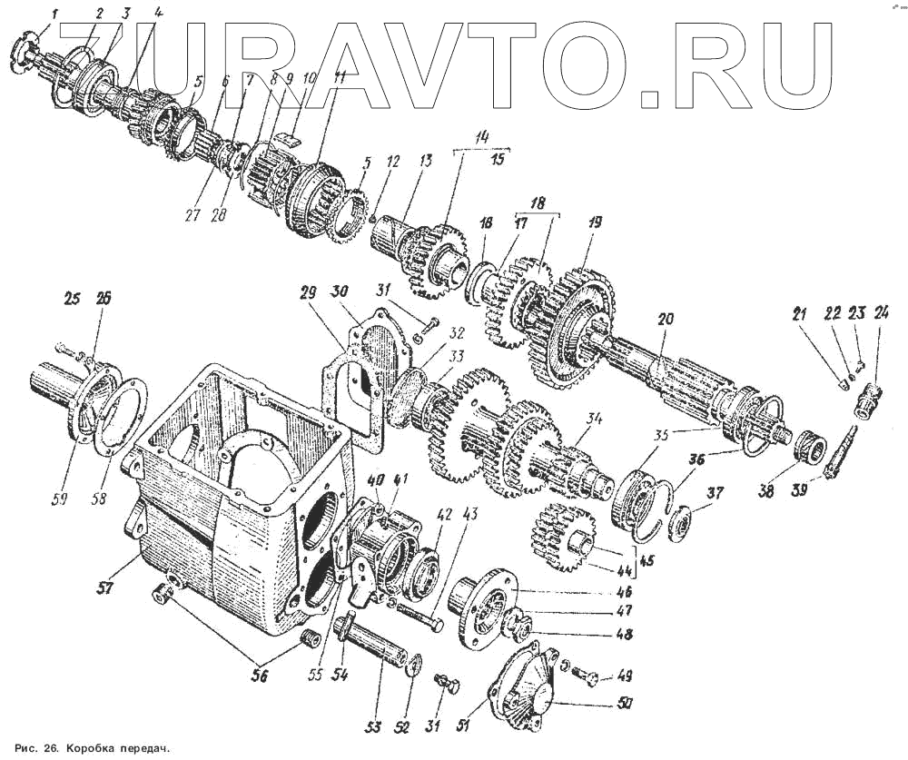 | 45 | 52-1701080-21 | Блок шестерен заднего хода в сборе | Нет в продаже |