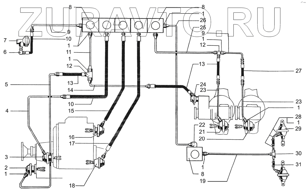 | 5 | 65032-1831062 | Трубка пневмокамеры включения переднего моста | Нет в продаже |