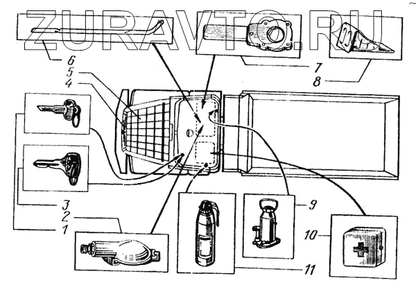 | 7 | 255Б-3901651 | Ключ воротка подъема запасного колеса | Нет в продаже |