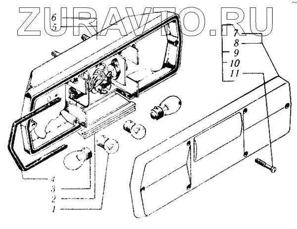 | 6 | ФП130-3716100-В | Корпус правого фонаря в сборе | Нет в продаже |