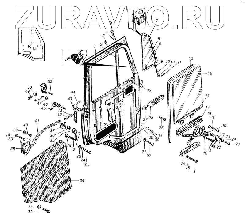 | 7 | 500-6103065 | Рамка поворотного стекла двери левая в сборе | Нет в продаже |