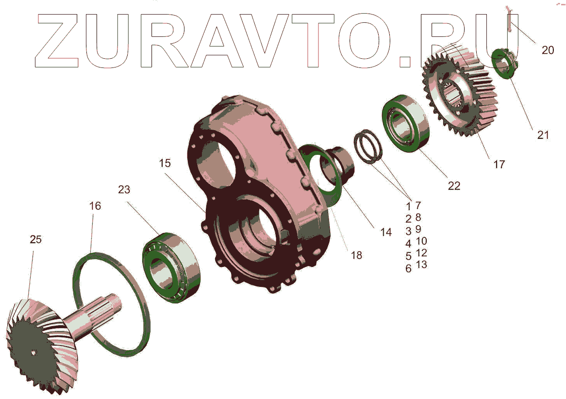 | 22 | 6-27613А1 | Подшипник роликовый конический редуктора среднего моста | Нет в продаже |