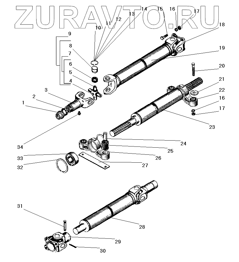 | 28 | 375Д-4502016-10 | Вал карданный (сварка) передний | Нет в продаже |