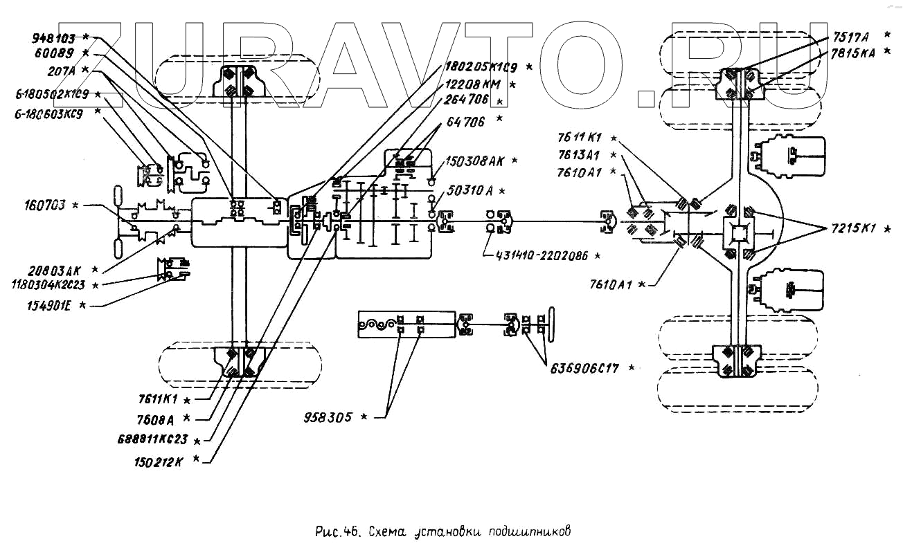 | 7610А1 | 7610А1 | Подшипник ведущей конической шестерни передний и цилиндрической шестерни левый (306545-П) | Нет в продаже |